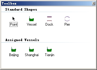 5.Tool box: Includes standard shapes and assigned vessels areas.
